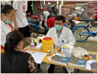 义诊当天前来咨询的前20名社区居民,还免费享受了乙肝表面抗原、丙肝抗体筛查。感染科大科护士长周美芳、感染科大科副科护士长徐满琴、门急诊大科护士长胡新亚以发放“健康处方”的方式,深入浅出地向社区居民讲解“养肝护肝的小贴士、均衡饮食、戒烟忌酒、规律作息”的重要性。青年志愿者们现场教授正确佩戴口罩、手卫生的方法,以改变日常生活中的不良卫生习惯,受到了社区居民的一致好评。