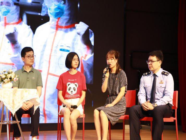 5月28日,市卫生健康委团委携手实验幼儿园党支部、团总支在雅居乐园区报告厅开展“弘扬抗疫精神 筑牢家国情怀”的主题活动。通过展示疫情防控成效,树立先进典型,引导教师坚定“四个自信”,弘扬抗疫精神,推动生命安全教育,增强家国情怀和民族自豪感。无锡市青春战疫优秀团组织——全国五四红旗团支部(无锡五院临床第二团支部)书记殷晓红应邀出席了现场直播活动。