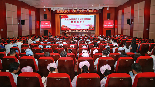6月27日,普仁医疗集团召开简朴而隆重的庆祝中国共产党成立98周年暨表彰大会,二院、五院全体院领导、在职及离退休党员代表、民主党派代表、管理干部、入党积极分子等300余人参加了会议。会议由市二院党委副书记、纪委书记赵鸽同志主持,市二院党委副书记、市五院党委书记鲁晓杰同志讲授专题党课。