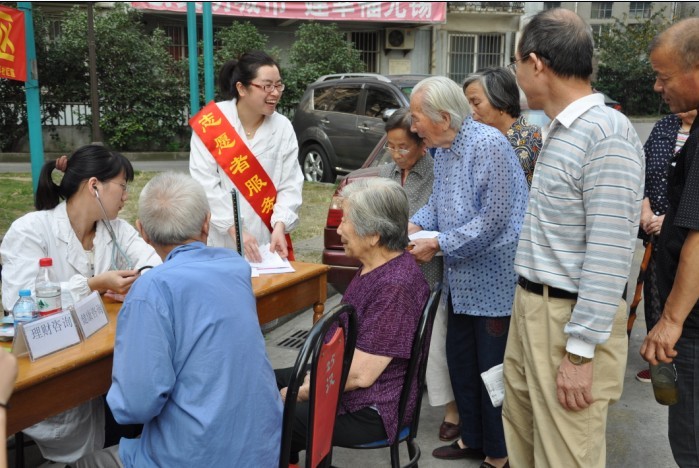 9月19日下午,市五院团总支组织青年文明号医务人员赴通江街道老戏馆弄社区开展了志愿者道德实践活动。为居民提供免费听诊、测血压及健康咨询等服务,并深入困难老人家中进行了免费健康体检,服务共达近百人次,发放防治高血压、糖尿病、秋冬季老年人预防保健等科普宣传资料近百份,受到社区群众欢迎和好评。