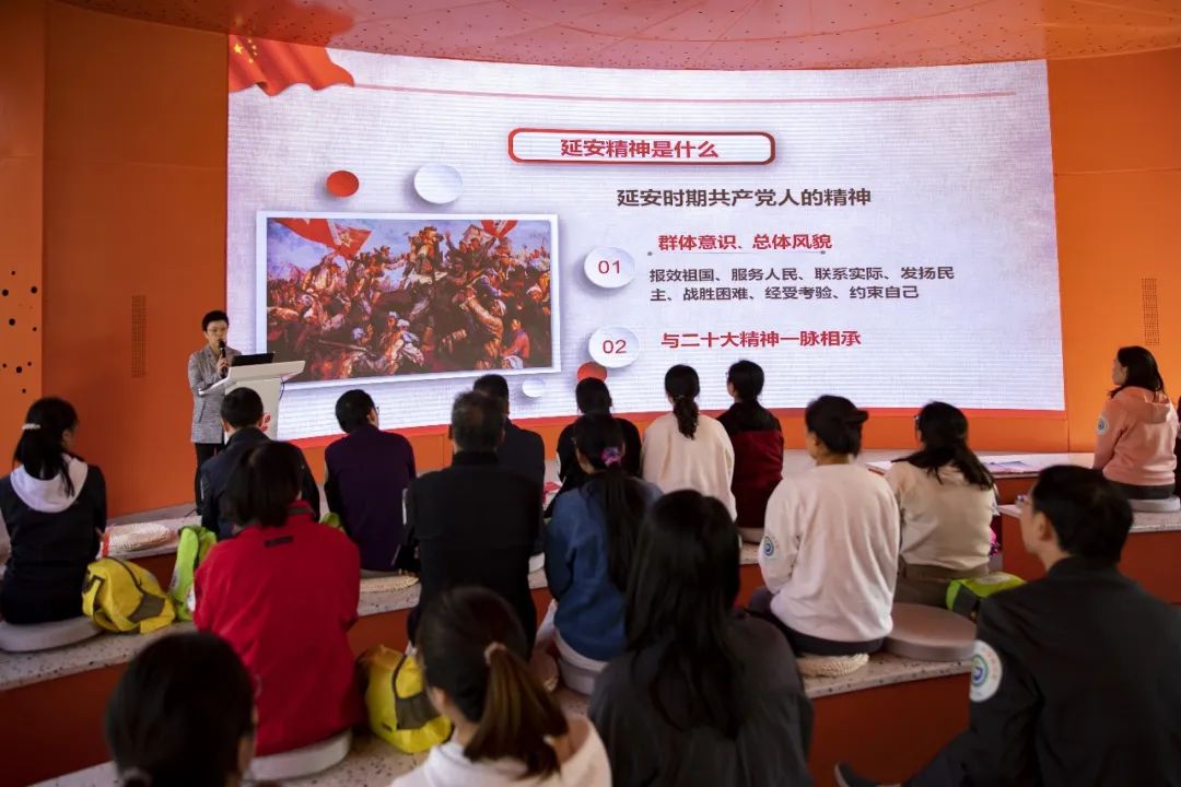 初心回眸区,在党委书记钱燕华的带领下,全体党员整齐列队,庄严肃立,举起右手,面对党旗庄严宣誓。铮铮誓言凝聚着信仰力量,传承着红色基因,抒发着家国情怀。大家一同学习红船故事,激起全体党员在新时代的背景下,踏上新“赶考”之路的初心源动力。