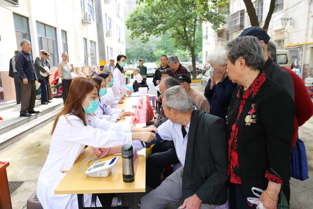 5月21日,临床第三党支部、机关第二党支部的党员志愿者们来到宁海里小区开展“学党史,办实事”义诊活动。