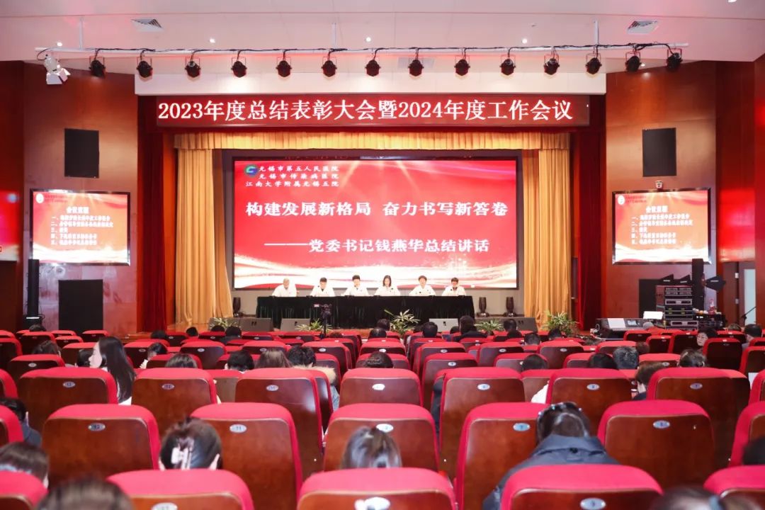 院党委书记钱燕华作了题为《构建发展新格局,奋力书写新答卷》的讲话,强调三方面:一是提高政治担当力,以实干创佳绩。要求全院干部职工要明确目标定位,紧扣“高质量”发展提能力、“精细化”运营抓管理、“公益性”导向强保障三大工作方向,通过高质量党建引领高质量发展,推动医疗质量建设、运营增效建设、学科人才建设,实现专科技术提升、服务效率提升、科技创新提升、管理能力提升,最终达到患者、员工双满意,努力谱好高质量发展五院新篇章。二是提优要素保障力,以善为履重任。要提升组织领导力,坚持一把手原则,坚持一盘棋统筹,坚持一竿子插到底。要细化工作颗粒度,确保数量稳定性,强化管理效益性。围绕“国内一流、省内领先、特色鲜明”的发展定位,想干事、干成事,确保工作质量优,让五院各项服务和技术的金字招牌在锡城百姓中口碑凸显,医院发展态势蓬勃向上。三是提升发展驱动力,以正风强落实。要夯实人才引育基础,既保障人才发展大势,又满足人才心头要事,更解决他们关键小事,确保人才引得进、留得住、发展得好。要守住正风肃纪底线,进一步完善责任传导、监督贯通、治理联动、纪法教育四方面体系,坚持全责任、全链条、全周期推进全面从严治党,促进从严管理监督和鼓励担当作为相统一,促进高质量发展和高水平安全良性互动。