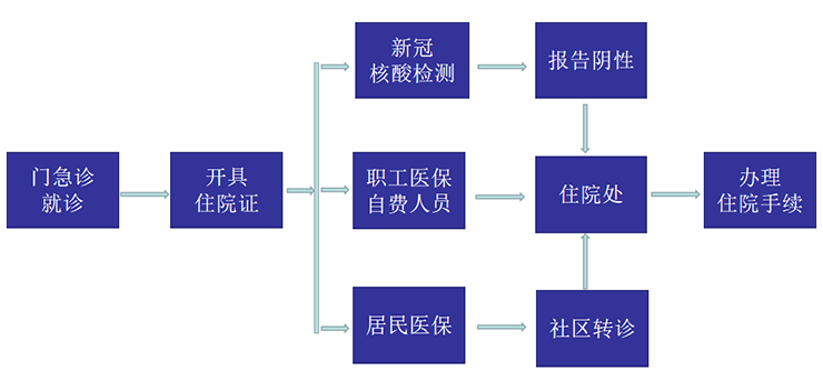1、经由门诊各科诊断,确需住院的病人,医生出具住院证。