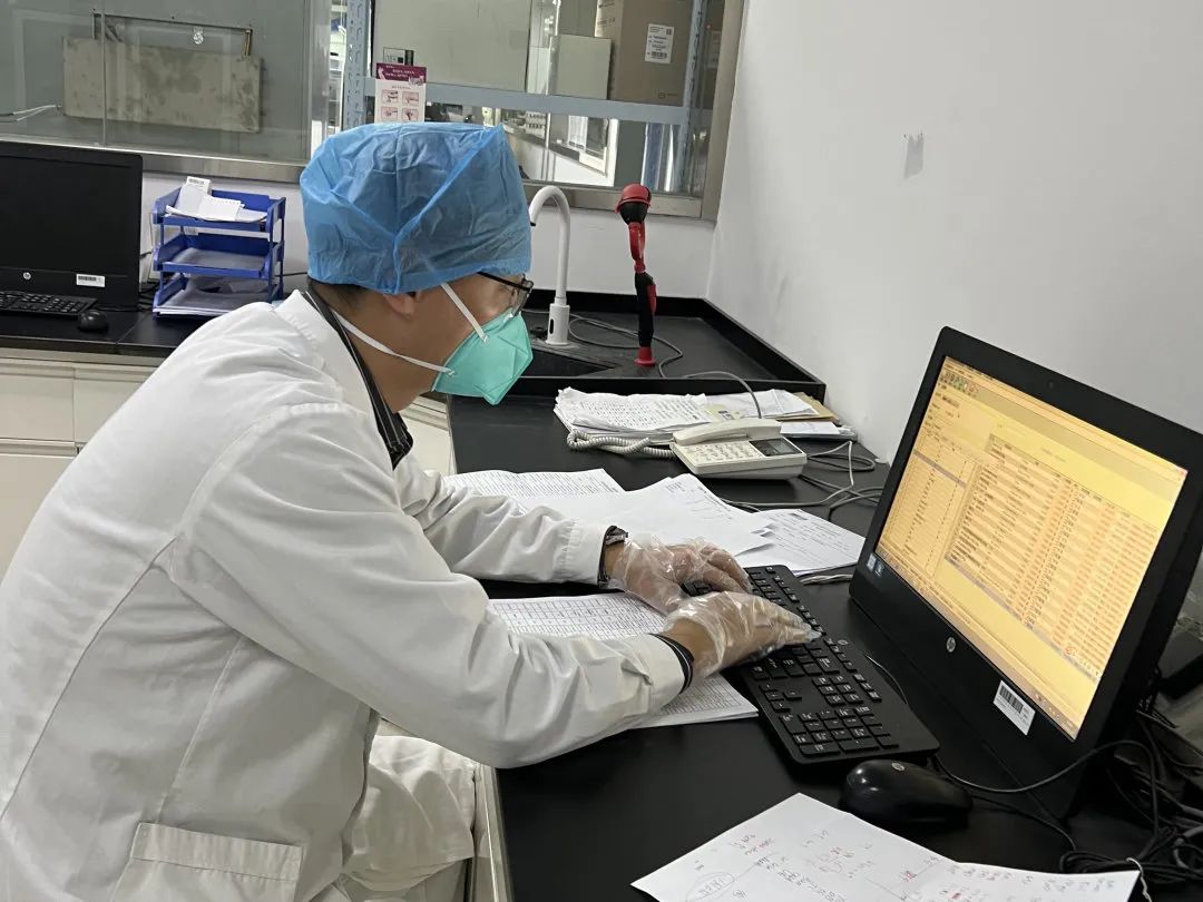 检验科刘斌夫妻俩双职工,家里两个孩子,四个老人,全都阳过了。自从政策改变以后,病人数量不断增加,其中急诊病人增加尤为明显,每天急诊生化、心肌酶谱、血气分析的标本量都在成倍增长。作为急诊和血库组的负责人,刘斌在症状刚刚缓和后就立刻返岗。元旦期间,奶奶去世,他依然坚守在工作岗位上,虽然工作辛苦,但是想到自己的工作可以救助更多的病人,他内心也觉得欣慰许多。