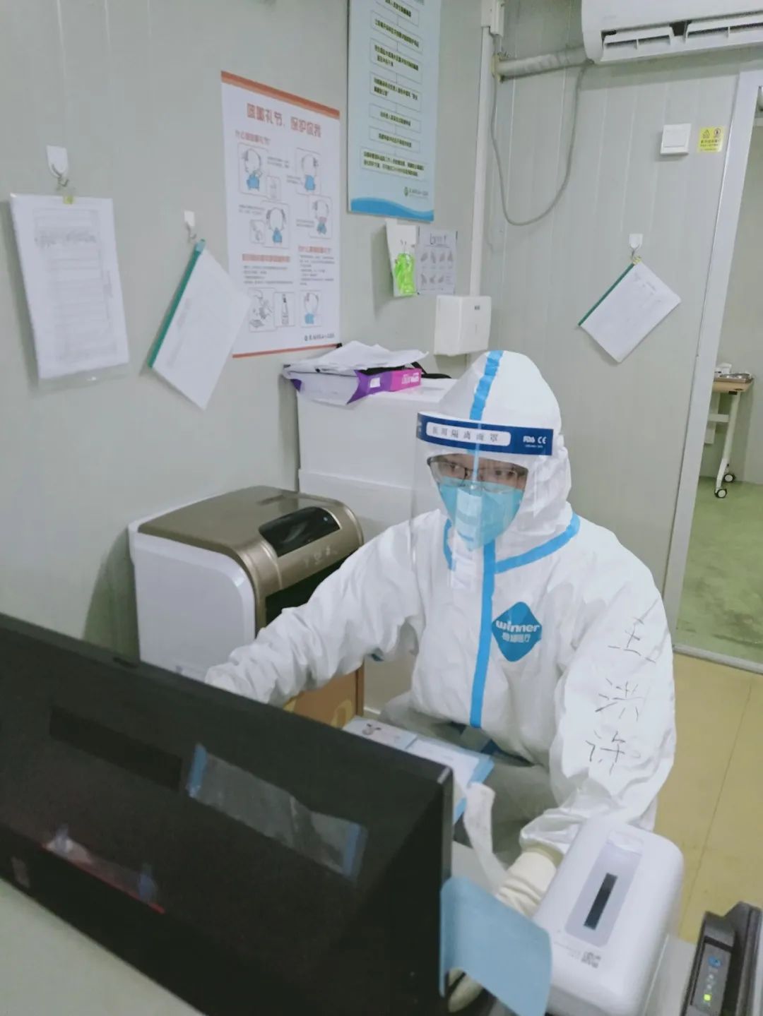 王洪许,一个急诊科默默奋斗九年之余的男护。结束闭环就第一天主动放弃休息,毅然决然回到急诊工作中。周围同事一个个因为感染而身体乏力,几乎无法坚持的时候,他依然精神抖擞。当大家还在不明所以的调侃他是超级巨人时,殊不知这个“超级巨人”的父母、妻儿均感染了新冠病毒,病倒在家,自己也有一些轻微的症状,然而面对这些困难和重压,他仍然毫无犹豫的去守护着这片无硝烟战场。